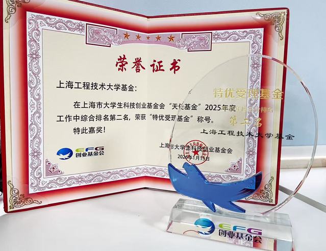 上海市大学生科技创业基金会2025天使基金年度工作会议于1月15日在上海北郊未来产业园召开,工程技术大学受理基金在全市25个受理基金获得2025年度综合排名第二名“特优受理基金”及两项“优秀个人”荣誉称号,这是我校受理基金第十二次获得双优的荣誉。
